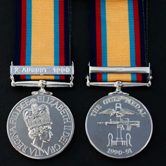 The Gulf medal was awarded to British Forces for the campaign in the Gulf during 1990 to 1991, mainly in Kuwait and Saudi Arabia.